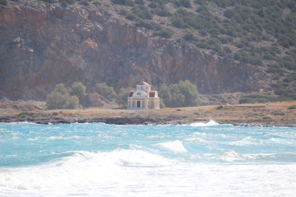 ligt op de plaats waar Kreta op zijn smalst is, namelijk |