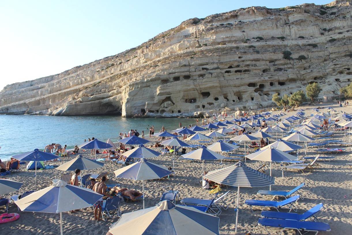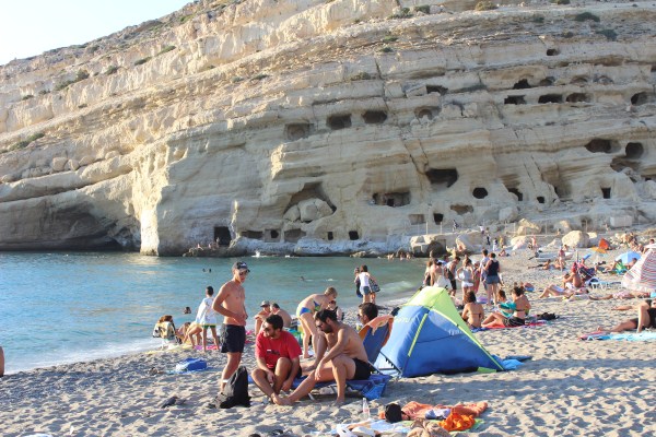 We hadden gehoopt nog wat tijd op het strand van Matala te kunnen verpozen, en ja