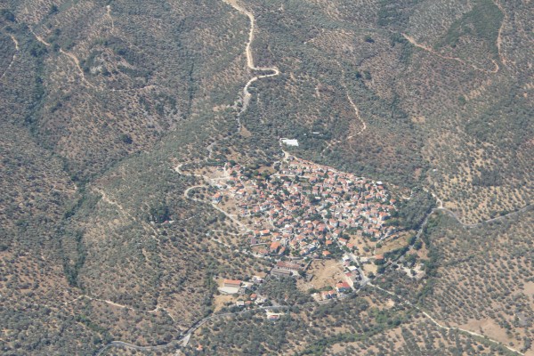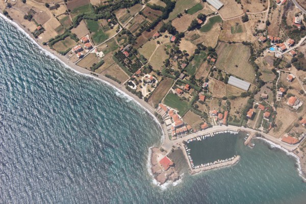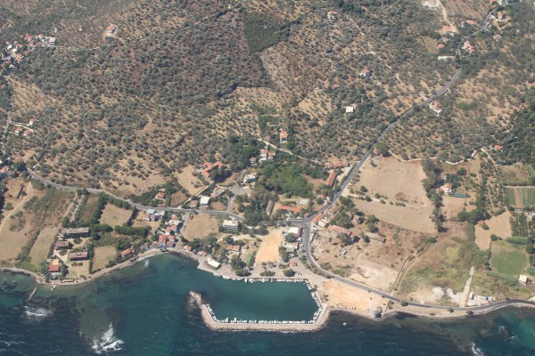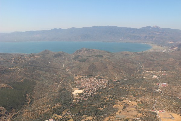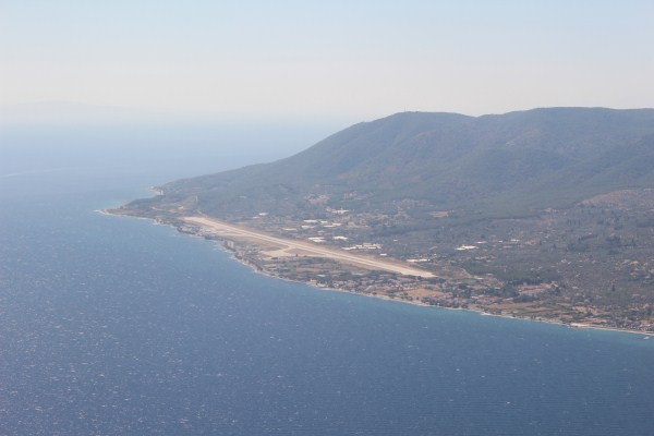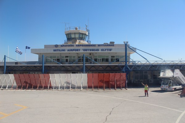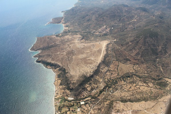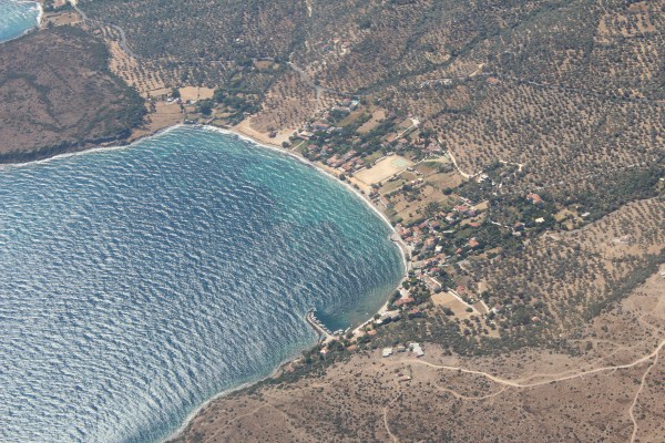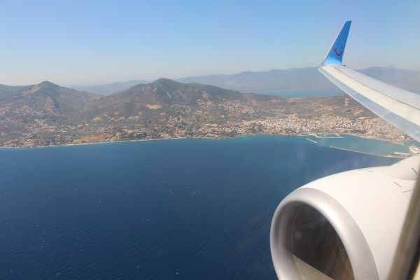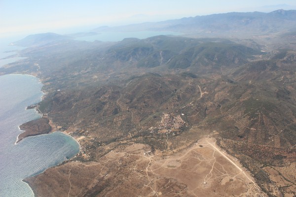 Het vliegtuig heeft de daling ingezet naar het eiland Lesbos. |